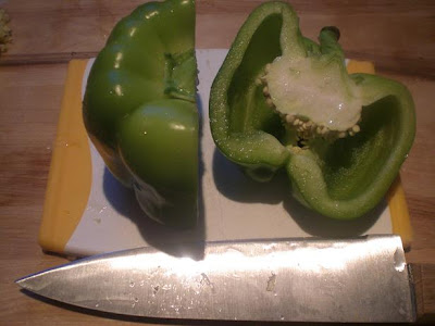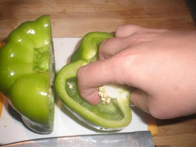 – Here’s how the pepper looks after removing the core.