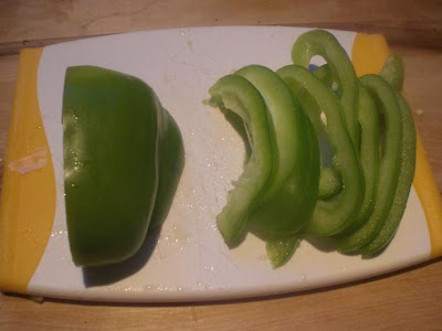 Here’s how to julienne a bell pepper without wasting any part of it. You can julienne by cutting the ends off, but I like this method because it doesn’t waste any of it.