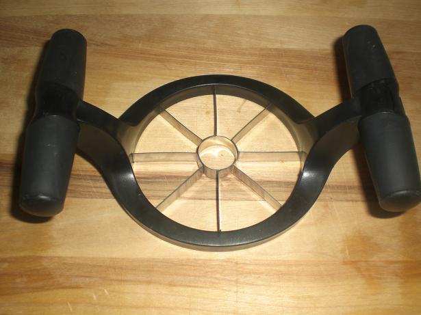– Apple wedger. This was a life saver when I was pregnant and craved apples dipped in caramel. It cores and cuts an apple into wedges. Very cool. It’s also helpful for cutting up an onion to make a bloomin onion.