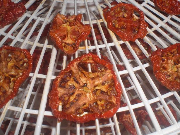 – Put the drying fan on top of the dehydrator and let it go. It can take up to 48 hours (depends on the thickness and juice content of the slices) for the tomatoes to dehydrate.