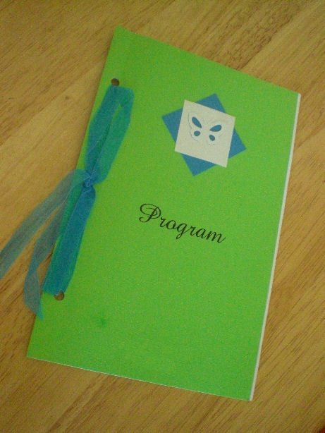 | Here’s how our wedding programs looked. They also had our names and dates at the bottom, but I edited them out to protect our privacy. The photo doesn’t do it justice, it looks much nicer in person. |