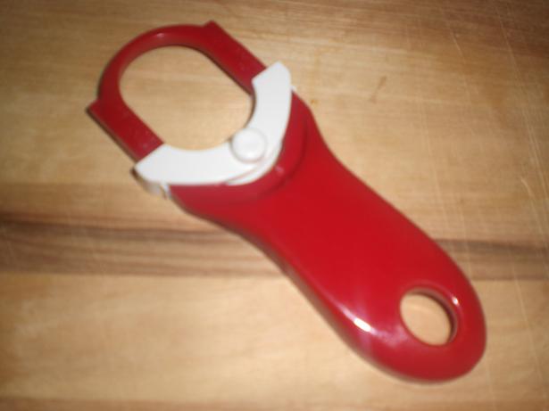 – Pineapple corer. This makes a nice, even hole down the center of a pineapple. It has a little “handle” thing to get it out of the pineapple easier.