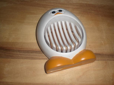 – Egg slicer. This makes it convenient to make even slices of hard boiled egg for cob salad or to chop eggs for egg salad. Plus, it is in a cute little egg-shaped character that makes me smile. 🙂