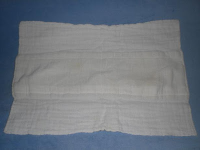 Here’s a Gerber pre-fold diaper. My mom bought these for me at Wal-Mart. They sell them in 12 packs for about $10.98 (about 92 cents each).